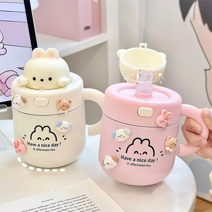 Découvrez la Gourde Avec Paille Inox Kawaii, un duo de tasses thermiques incontournable pour les adeptes de mignonnerie fonctionnelle. Chaque gourde, l'une arborant un charmant ours et l'autre un lapin attendrissant, est conçue en acier inoxydable durable et propose un couvercle pratique doté d'une paille. Le sourire radieux des animaux, gravé sur le devant, accompagné de l'inscription positive "Have a nice day!", vous garantit un début de journée ensoleillé, peu importe la météo. Les embellissements tridimensionnels jouent avec l'imaginaire, créant une atmosphère ludique. Tandis que les tons apaisants et les designs joviaux sont parfaits pour savourer vos boissons préférées. Embrassez une esthétique adorable et pratique avec ces gourdes uniques.
