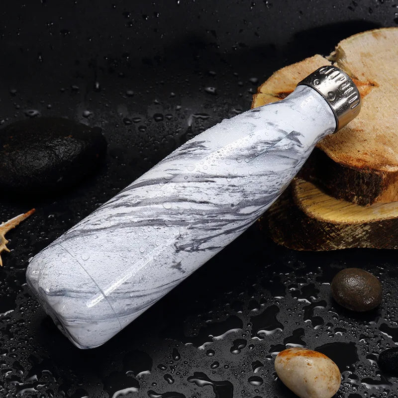 Découvrez la Gourde En Inox, un ensemble de six bouteilles écoresponsables conçu pour allier utilité et esthétique. Ces flacons durables sont faits d'acier inoxydable de haute qualité, promettant une conservation optimale de vos boissons. Leur design d'exception évoque l'élégance de la nature avec des finitions minutieusement créées pour refléter la beauté de pierres précieuses et de marbres variés. Chaque pièce arbore une apparence unique, des veins délicates du marbre blanc aux éclats captivants d'une turquoise, en passant par la profondeur d'un marbre noir fissuré ou l'éclat subtil d'une surface iridescente. Le couvercle métallique vissable assure une étanchéité parfaite, rendant chaque gourde idéale pour une hydratation stylée en déplacement.