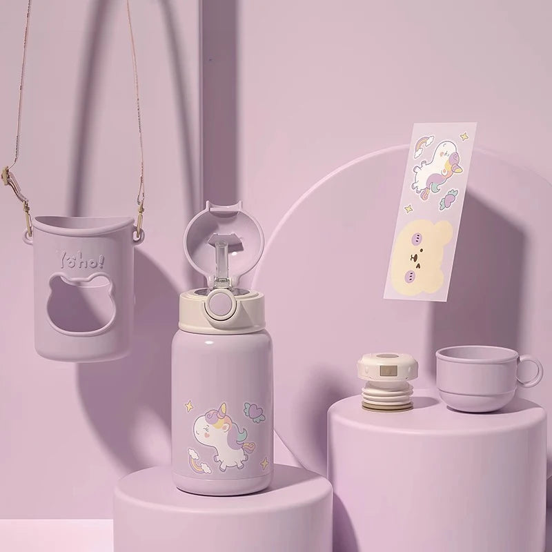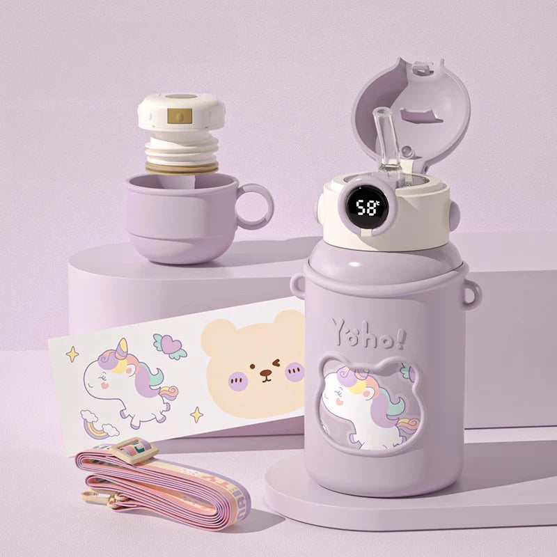 Découvrez la Gourde Enfant 4 Ans, conçue pour les tout-petits avide de magie et d'aventures! Façonnée dans des teintes apaisantes, cette gourde thermos est parfaite pour maintenir les boissons à leur température idéale. Son revêtement extérieur en silicone, parsemé de motifs féeriques, offre une prise en main sécuritaire et agréable. La particularité de ce contenant réside dans son couvercle intelligent affichant la température du liquide, assurant ainsi la sécurité de votre enfant. Grâce à son couvercle supplémentaire doté d'une paille pratique, les petites soifs seront étanchées en toute facilité. La bandoulière ajoute un charme tout en permettant un transport aisé. Fabriquée en acier inoxydable robuste, cette gourde promet de résister aux journées dynamiques tout en gardant les boissons favorites bien au frais ou agréablement chaudes.